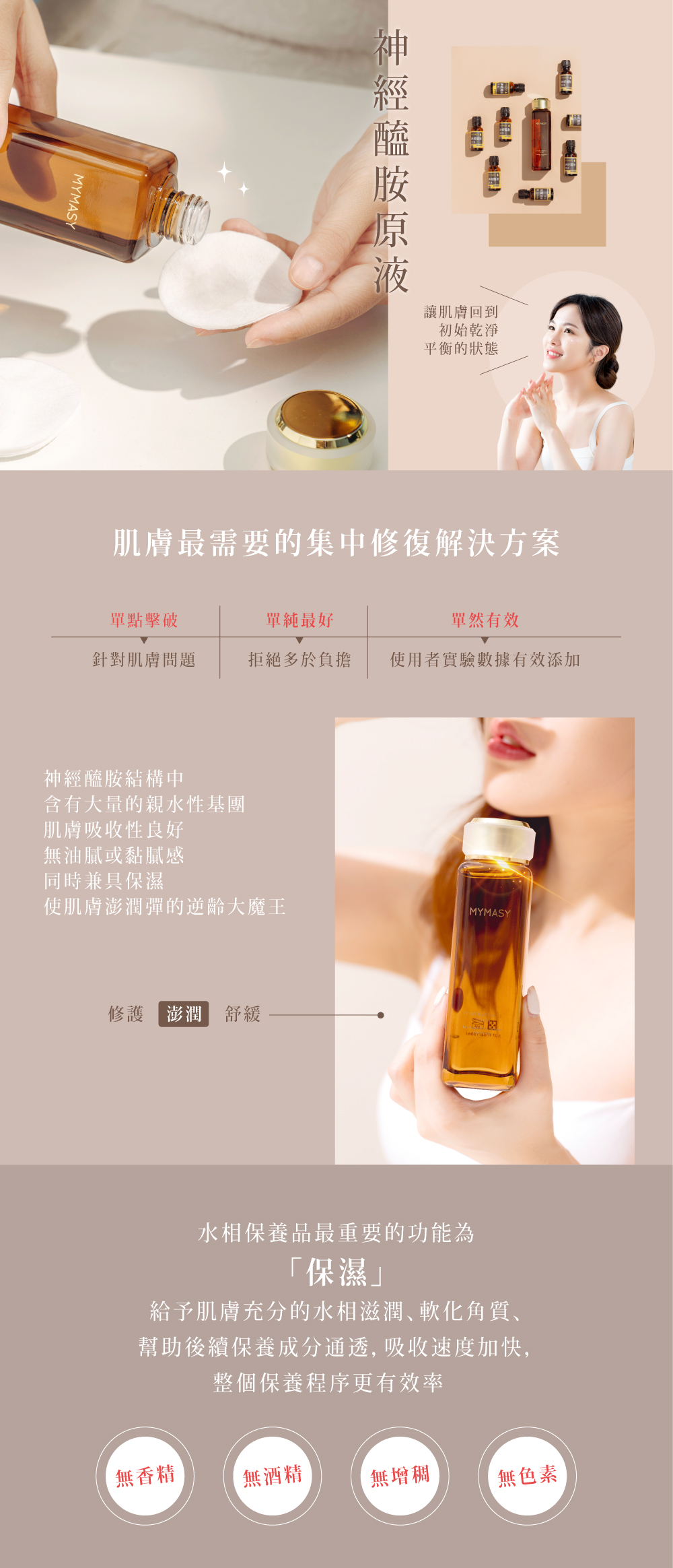 神經醯胺結構中含有大量的 親水性基團 ,肌膚吸收性良好,無油膩或黏膩感,調整敏弱肌質,使肌膚澎彈潤的逆齡大魔王